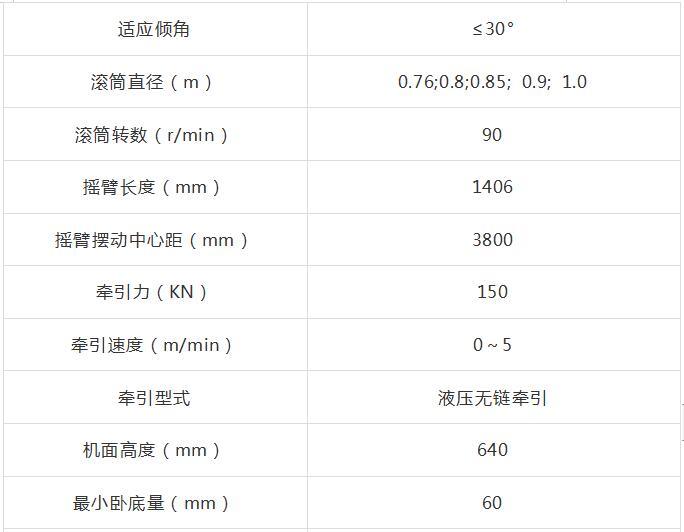 該機適運用于頂板中等穩(wěn)定, 煤層厚度在0.76-1. 40 米, 傾角≤30°的煤層,可采普氏硬度系數(shù) f ≤3. 5的煤和非金屬層狀礦床。即可與金屬摩擦支柱或單體液壓支柱、 金屬鉸接頂粱配套組成普采或******普采工作面, 也可與薄煤層液壓支架配套組成綜采工作面。該機設(shè)有液壓防滑制動器, 當煤層傾角達到或超過16°時, 應(yīng)按煤礦安全規(guī)程規(guī)定自備同步液壓防滑絞車。